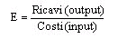 Il primo dei rapporti finali è il rapporto di produttività (fisica) dei fattori di produzione e esprime l'efficienza della trasformazione produttiva (secondo blocco dall'alto della figura [20] e si definisce efficienza interna o di combinazione. Il secondo rapporto, quello tra prezzi e costi unitari, è indice, invece, della capacità dell'impresa di negoziare "al meglio" le produzioni - sui mercati di sbocco - e i fattori - sui mercati di approvvigionamento - e si può definire, per questo, rapporto di efficienza esterna o efficienza commerciale o efficienza di negoziazione. Come la trasformazione economica dipende da quella produttiva, cosė l'efficienza economica è funzione dell'efficienza sia interna (produttiva) sia esterna (commerciale). [23]. Cfr. Yasuhiro Monden, Produzione just-in-time, ISEDI, Torino, 1986, pag. XXX (Prefazione) [24]. Questa conclusione è rappresentabile con il seguente modello semplificato di impresa come sistema di trasformazione di efficienza in profitto. Gli input sono rappresentati dai prezzi di vendita, funzione dell'efficienza esterna e dai costi unitari di produzione che possono essere pensati come un indicatore significativo di efficienza interna, in quanto dipendono dalla produttività dei fattori (supponiamo sia trascurabile l'effetto sui costi dell'efficienza esterna di negoziazione dei fattori).
