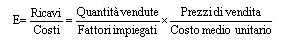 Ricordando che i ricavi e i costi si quantificano dal prodotto delle quantità per i rispettivi prezzi, il precedente rapporto può anche essere scritto come segue: