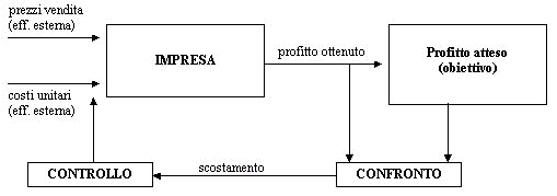 Il modello deve leggersi come segue: quando si verifica uno scostamento tra il livello di profitto atteso, posto quale obiettivo (nei programmi) e il livello effettivo di profitto (output), allora l'impresa deve cercare di modificare gli input, vale a dire: