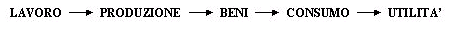 La condizione a) asserisce che, in generale, la produzione si manifesta se C(B) < CA(B), [1] avendo indicato con C(B) il costo di produzione di un dato bene B e con CA(B) il costo di autoproduzione di quel bene, supponendo altresė che il costo di autoproduzione sia uguale per tutti i soggetti (se fosse minore per qualche soggetto, si rivelerebbe conveniente la produzione da parte di quel soggetto). Se supponiamo un'economia caratterizzata dal baratto quale forma di scambio, la differenza tra il costo di autoproduzione e quello di produzione deriva dalla maggiore produttività del lavoro impiegato nella produzione da parte del produttore, rispetto a quello impiegato nell'autoproduzione da parte delle aziende di consumo. Definiamo "differenziale di produttività" o, più semplicemente, vantaggio di produttività totale della produzione sviluppata nel processo produttivo volto ad ottenere B, la differenza: CA(B) - C(B) = P(B) [2] Quando un dato processo di produzione sviluppa un differenziale di produttività, può essere conveniente istituzionalizzare quel processo nell'ambito di date unità economiche, nelle quali il lavoro, anziché all'autoproduzione per il consumo finale, è destinato alla produzione per ottenere beni da scambiare con altre unità nascono le aziende di produzione come strumenti per produrre. Consideriamo ora la convenienza tra due scambisti X e Y allo scambio dei beni B' e B"; B' prodotto da X e B" da Y. Verificata la condizione di conseguimento di un differenziale di produttività, lo scambio si rivela conveniente per il soggetto scambista X se può attuarsi ad una "ragione di scambio" (prezzo, se lo scambio è monetario), p, tale che: C(B') < p < U(B"), [3] ove C(B') indica il costo di produzione del processo produttivo necessario per ottenere il bene B' ceduto nello scambio e U(B") indica l'utilità della combinazione di consumo attuata con il bene B" ricevuto nello scambio. Deve, inoltre, essere: p < CA(B") < U(B") [4] Ciò, naturalmente, deve valere - in forma simmetrica - anche per l'altro scambista Y per il quale lo scambio del bene B" prodotto con il bene B' necessario per il consumo finale risulta conveniente solo se: C(B") < p < U(B') [5] e p < CA(B') < U(B') [6] Tenendo conto contemporaneamente della [3] e della [6], eliminando U(B') e U(B"), considerati non quantificabili, consegue che deve essere: C(B') < p < CA(B') [7] Considerando la [4] e la [5], dopo avere trascurato le utilità, risulta: C(B") < p < CA(B") [8] Ciò porta a concludere che, considerando anche i fenomeni interconnessi della "produzione" e dello "scambio", deve risultare, in generale: C(B) < p < CA(B), [9] avendo indicato con B, come in precedenza, un bene ottenuto da un dato processo produttivo. Se p < C(B), il produttore non produce; se p > CA(B) il consumatore non acquista, ma autoproduce. La [9] evidenzia come la ragione di scambio divida, quindi, la produttività generata dalla produzione in due quote: